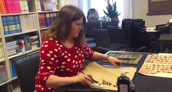芬兰姑娘把中国书法作为毕生追求