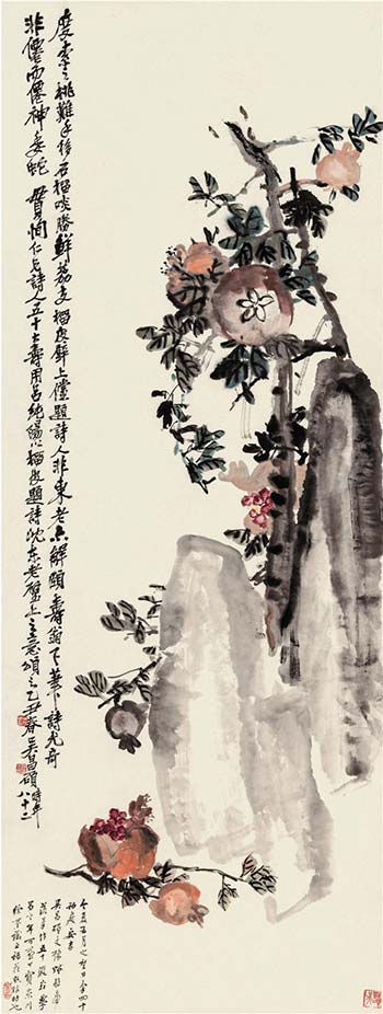 吴昌硕 石榴 135.7×51cm 1925年 中国美术馆藏