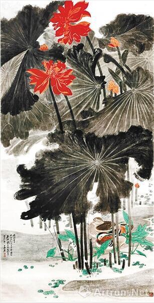 2011年5月31日,在香港苏富比“梅云堂藏张大千画”专场上,张大千的《嘉耦图》以约1.91亿港元成交。此画作于1947年,设色纸本立轴,纵184厘米,横90厘米,以荷花入画,寓意佳偶天成。
