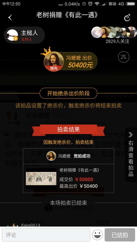 大爱:慈善拍第三天三绝杀 老树作品2分钟拍到5万