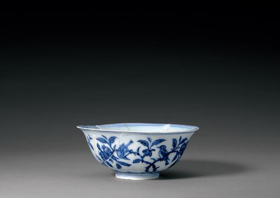 青花小鸟栖树图碗 明弘治 (高5.5厘米 口径13.5厘米 足径4.6厘米)