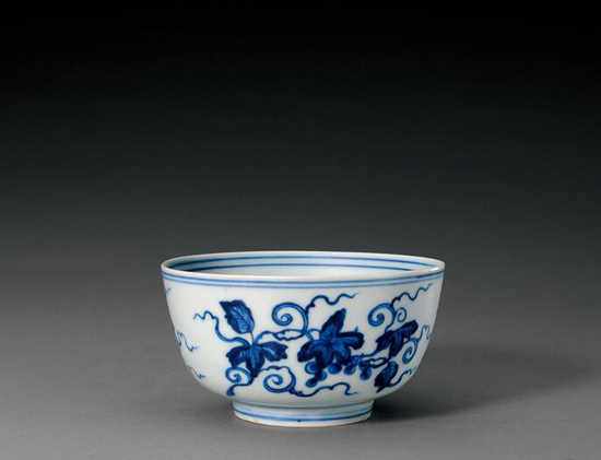 青花折枝葡萄纹碗 明弘治 (高6.9厘米 口径12.5厘米 足径6.1厘米)