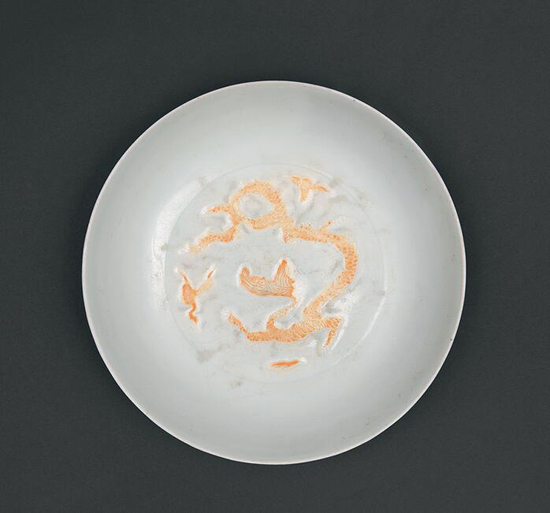 白釉露胎锥拱海水云龙纹盘 明正德(高4厘米 口径17.7厘米 足径11.2厘米)