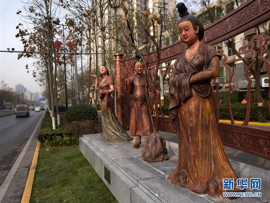 西安:馆藏文物“变身”街头雕塑