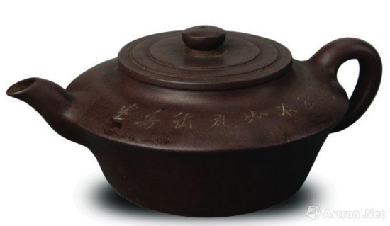 紫砂是我国陶瓷器艺术中的重要门类,以江苏宜兴窑为代表,器型主要以茶具的紫砂壶为主。据明末周高起《阳羡茗壶系》记载:“茶至明代,不复碾屑,和香药制团饼,此已远过古人。近百年中,壶黜银锡及闽、豫瓷,而尚宜兴陶。”阳羡即宜兴古称,《阳羡茗壶系》是明代一本专论宜兴紫砂壶的著述,上述引文说明宜兴紫砂壶兴起于明代,与饮茶方式的改进有关。作为精致茶具的紫砂壶,吸引着众多文人雅士的垂青。清代以后,砂壶刻铭、刻诗句成为一种普遍现象,也彰显着紫砂艺术的独特魅力。本文介绍一件安徽博物院收藏的清代“金玉不如瓦缶”铭紫砂曼生壶。