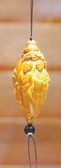 “明有奇巧人曰王叔远……尝贻余核舟一,盖大苏泛赤壁云。舟首尾长约八分有奇,高可二黍许。”明魏学洢的一篇《核舟记》描绘了核雕的巧妙绝伦,令人惊叹。在核雕大师陆小琴的工作室,她的《核舟记》作品就摆放在展厅,其雕刻技艺和艺术才华,似不逊于古核雕大师王叔远。这位苏州女子的“山花奖”作品《二十四孝》用二十四颗橄榄核,以浮雕满工的手法,生动展现了孝子们的感人故事,人物刻画细致入微,栩栩如生。