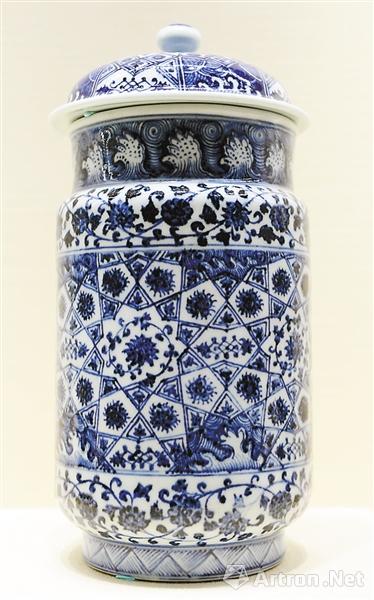 青花锦地花卉纹壮罐 摄影/记者 王晓溪