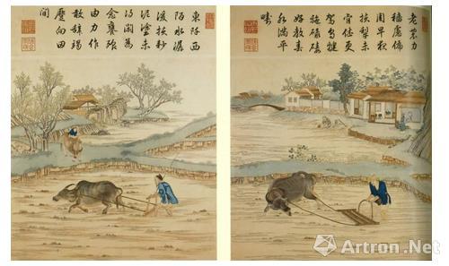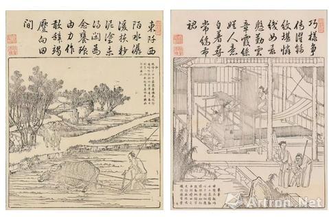 乾隆当政期间,宫廷亦制作各式以耕织为题的宫廷画及工艺品,如佳士得香港2004年拍卖的乾隆御制刺绣屏幅八幅,足证农桑之兴衰对国祚社稷何等重要。