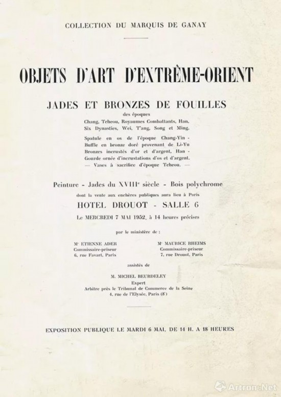 1952年5月7日Ganay伯爵藏品专场拍卖图录