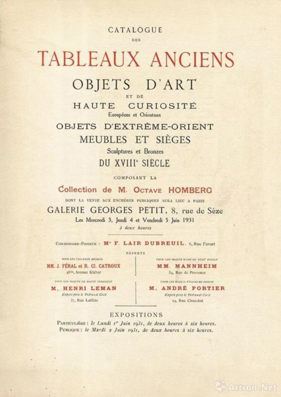 1931年Octave Homberg 收藏专场图录