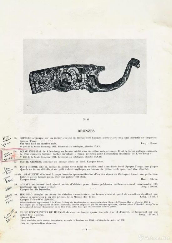 2.巴黎Htel de Drouot,Marquis De Ganay(Ganay伯爵)收藏专场,1952.05.07,Lot36,落槌价80000法郎;