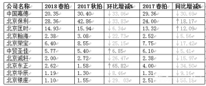 2018年春拍京城10家拍卖行成交总额对比表(单位:亿元)