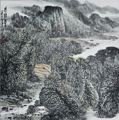 锁定在茂林与农家的视角上,并运用点景人物去活化蜀中山水画的思想内涵。又如《晨韵》,我力求突破自己原有的笔墨模式,在技法上将中国画的线条与皴 擦以及水墨点染揉为一体,去强化蜀中山水的古朴神韵。