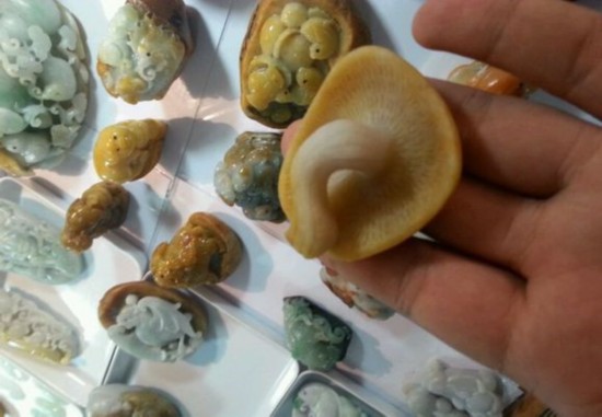化腐朽为神奇的翡翠蜗牛!蜗牛壳明明就是砖头料啊有木有,可是,雕出了这样的题材,身价立马就涨了......