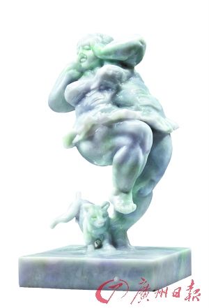 二,雕塑家的心灵自由与物质精神的结合。德国的美学大师在评论古希腊雕塑的代表作时说,“这些作品之所以生动,是由于他们是从艺术家的心灵自由产生出来 的,我从他动感的雕塑里面看到了作家思想的灵动,从雕塑家含烟斗的凝神当中又体会到了他深深的思考”。用黑格尔的话来说“雕塑家能够用天才的闪光,把灵魂 关注到自然的物质材料里去,使它服从自己的驾驭”。所以肥女作品在自由生动方面达到了新的高度。我因此联想到,中国的老百姓为什么喜欢布袋和尚?因为布袋 和尚是国产的佛,他的外在形象是笑口常开、袒胸露腹,这种慈爱的形象在民间非常有亲和力,他的精神气质又是心无挂碍的大自在。在这里,许鸿飞作为雕塑家的 心灵自由与布袋和尚的精神是灵妙相通、异曲同工的。对一个雕塑家来说,心灵自由翱翔,才有雕塑人物的超凡脱俗,创作之心摆脱了羁绊,作品的形就可以随心所 欲。肥女雕塑不仅壮硕,而且灵巧飘逸,好像能摆脱地球的引力,比如东方飞天式的自行车塑,腾空的滑板技巧,这是杂技演员都做不到的动作,雕塑中的肥女做到 了,这些造型更多地反映出艺术家的向往,又是大众心理能够接受的理想境界;