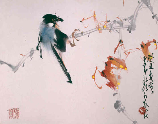 赵少昂的花鸟画最大、最优的特点,就是以形写神,形神兼备,充分体现了准、稳、狠的“一笔过”之功。他自己也养鸟,并且走入了花鸟的客观世界作深入细致的 观察、分析和研究。他数十年如一日的忠实花鸟写生,在脑海中累积了各种花鸟活泼多姿的“形”,才达到了简练准确的“一挥而就”。他脑子里如果没有“形”做 坚实深厚的基础,就是再高超的笔墨亦是枉然。
