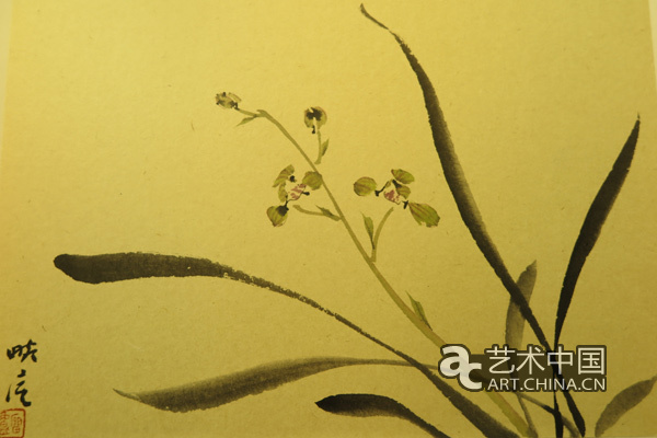 沐斋的兰花禁得起人们仔细观看与揣摩,细看那花瓣的描绘,有精美的勾勒,也有饱满的色彩变化,走向灵动,破解了古法的死板与程式化。因而,有人曾评价沐斋的兰花是“弃叶求花”,其实他的“叶”依旧流畅自如,只是他的“花”更加丰富自然罢了。