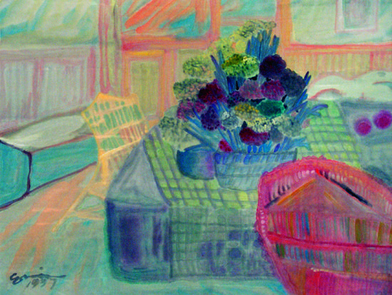 杨佴旻是个创作上的多面手,人物、风景和静物都有所涉猎,而且都画得颇有趣味。就我观画的经验而言,喜欢那种表情丰富的东西是艺术家才情的表现,单一则说 明了才能的偏窄。杨佴最拿手的是风景和静物,在运用水墨材料上得心应手,尤其突出的是色彩与墨色之间的融汇,以及一些机理的效果。我见过别的画家以水彩或 水粉方式弄的所谓水墨画,堆积了很多颜色和重墨,但仍然显得单薄。杨佴旻恰倒好处地利用了晕染,使水分和色彩及墨色天衣无缝地糅合起来,给画面增添了厚重 感和细腻的层次感……