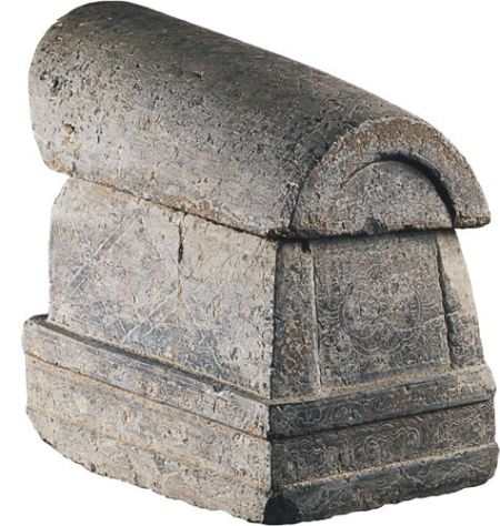 隋 石舍利棺 高47.5厘米,长49厘米,厚31厘米。该舍利棺石灰岩质地,分为棺盖、棺体与棺座三部分,上刻精湛的纹饰,细观多为佛教里推崇的吉祥图案。舍利子是佛 祖存在的物质象征,备受佛教信仰者的尊崇。这种石舍利棺出土不多,无论从宗教角度还是文物角度看,均具有较高价值。