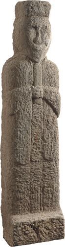 东汉 石翁仲 高180厘米。石灰岩质地。翁仲头带冠,面相丰满,身着交领宽袖长袍,双手持笏板站立于方座上。