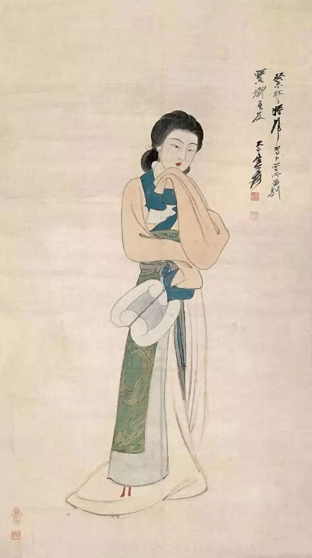 在20世纪的中国画家中,张大千无疑是其中的佼佼者,画意境清丽雅逸。他才力、学养过人,于山水、人物、花卉、仕女、翎毛无所不擅。不仅山水画笔酣墨畅、恣肆淋漓,花鸟画鲜活灵动、形神毕肖,仕女画也细致之极。著名画家于非闇曾说:“大千人物,尤以仕女最为画道人赞赏,谓能大胆别创新意。”原因是“他对于女性观察得很精密,能用妙女拈花的笔法,传出女儿的心声,这一点是他的艺术微妙,也是他在女性身上曾下了一番工夫的收获。”大千先生也曾在一首题画诗中自道:“眼中恨少奇男子,腕底偏多美妇人。”