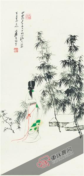 1944年,张大千为张心瑞18岁生日所作《倩影》。