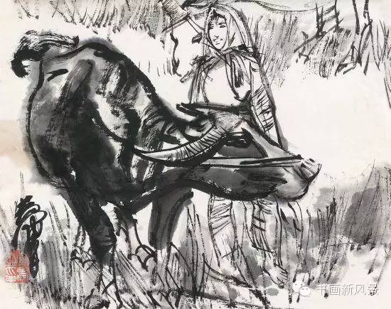 黄胄先生以画驴著称,殊不知他也特别爱画牛。因为黄胄先生是属牛的,所以他笔下的牛就更添了一份与生俱来的灵动。