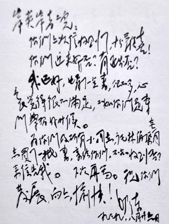 另外,毛主席写东西也要看对象。不论是书法、诗词,还是家书、书信,都要看对象。如果对方文化程度高,属于高级知识分子,例如大学教授、科学家或知名人士,他写给他们的字就很草、很飘逸,注重传达一种意境,这是一种写法。如果对方文化程度相对较低,比如是普通群众,或他家乡的一些亲属,他又是一种写法,有些书信就是这样。(文字:孙琳)