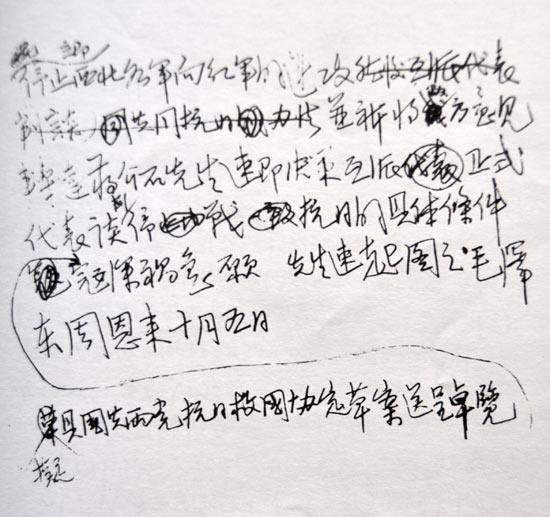 毛主席写给张学良信的手稿(供图:齐得平)