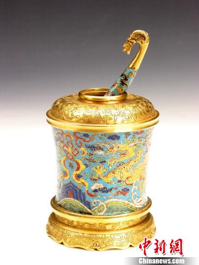 清乾隆款掐丝珐琅海水双龙笔架 程景伟 摄