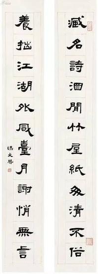 民国 谈月色 瘦金书五言联
