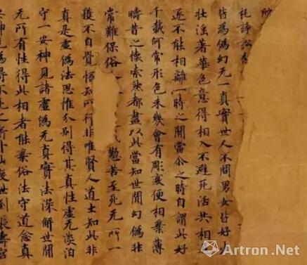 在敦煌遗书中颇引人注目的还有三叶关于书法理论的写本残卷,分别为论述写字方法和王羲之书论,“笔势论”残卷,是民间传说中的王羲之书论抄件。