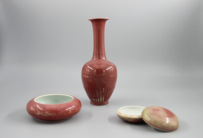 豇豆红釉菊瓣瓶、太白尊、镗锣洗和印泥盒
