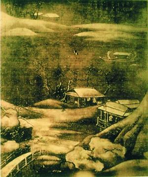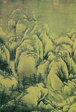 宋代山水画家真正得李成荒寒骨气的,范宽、郭熙二人最为突出,以至在北宋时形成了以李、范、郭为主的喜画雪景寒林、推崇荒寒画风的潜在绘画流派。郭 若虚以李、范之作为一文一武,而二家都有冷寒的特点。清恽南田说:“雪图自摩诘以后,惟称营丘、华原、河阳、道宁。”范宽的雪景色非常有特点,从他的《雪 霁图》、《雪山萧寺图》、《雪景寒林图》等图中,就可看出那种混莽而又荒寒的韵味。清初宋荦《论画绝句》“华园雪景特雄奇,笔底全将造化窥”,正说到这一 特征。郭熙善写山水寒林,在李成的寒林之外,别构一种灵奇。他的树作鹰爪,石如鬼面,似乱云暗渡,于荒寒中多了一份萧森之感。