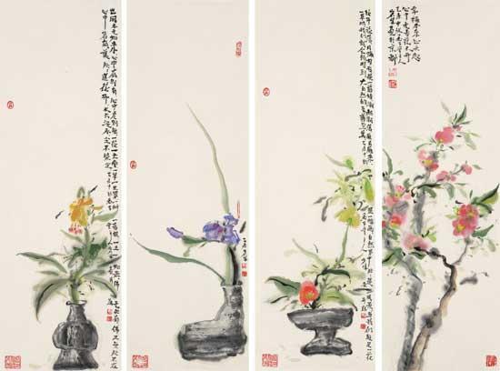 万类皆是性灵。白岩峰笔下的花鸟和山水,不困囿于现实生活中琐碎的细节,缘起于他的灵魂里固有的连绵不绝的诗情画意,藉花与山水传情,即兴抒 发,真切感人。画面首先传递给人们的是气势和气韵,气骨和气度。是一片爽风西来云雾扫开天地憾,大江东去波涛洗净古今愁的达观心境。