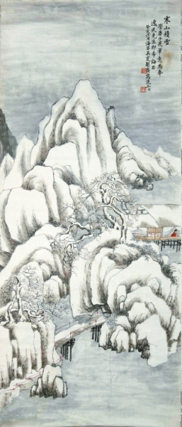 天气预报,周二河南大部有大雪。雪花飘飘,未久便将变成白雪皑皑的银白世界,一派澄洁,悦人身心。为了增添“瑞雪兆丰年”的喜庆劲儿,余取出上个月上海拍得的一幅吴震的《寒山积雪图》欣赏把玩,以待今年的第一场雪。