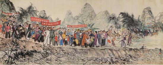 黄胄 同饮一江水(拍品编号:2093) 场次:必攻不守Ⅱ——黄胃书画作品专场 设色纸本;镜心;146×360cm.约47.3平尺 起拍价¥0
