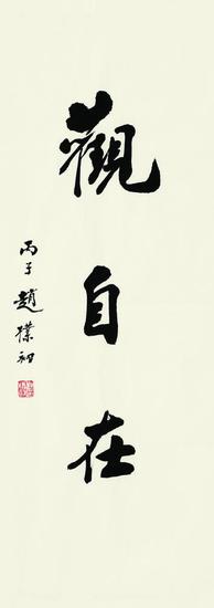 赵朴初 行书“观自在”(拍品编号:206) 起拍价¥60,000 纸本 镜心 录文:观自在。 款识:丙子赵樸初。 钤印:赵樸初印 著录:《清风明月-纪念赵樸初诞辰108周年书法集》P107,常州书画院,2015年8月。 展览:“清风明月-纪念赵樸初诞辰108周年书法展”,常州书画院,2015年10月。 68×26cm 约1.6平尺