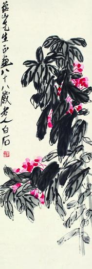 纸本,立轴 款识:蕴山先生正画,八十八岁老人白石。钤印:白石翁,101×34cm 约3.1平尺