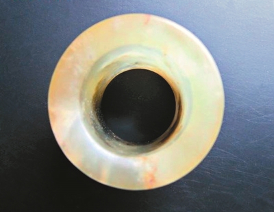 笔者近来游逛古玩市场,淘得一枚清代扳指,很是精美。这枚扳指为玛瑙材质,高2.6厘米,直径3.2厘米,包浆莹润,纹饰为天然形成,犹若远山含黛,十分漂亮。