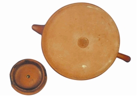 仔细审视发现,此壶壶盖(图2)内有“寿珍”印款;壶腹刻有文字,并有“甲辰夏月”及“韩太刊”款;壶底(图3)亦有花押印款。经专业人士指 教,寿珍当指民国时期制壶第一人——程寿珍。而韩太(泰)被徐秀棠大师誉为碑刻家。壶底标识是花押印,似龙的图案。“甲辰夏月”应为1904年。根据程寿 珍和韩太的生活时间推断,“甲辰夏月”应为1904年。有紫砂专家鉴定时指出:当年程寿珍是位年近五十的中老年人,其制技精湛不在话下,此壶应是佳品。在 1904年,两位大师级人物的合作,填写这一年的“空白”,亦为研究他们当年的友情轶事增添了史料依据。另外,壶底的花押印也极少见,十分难得。