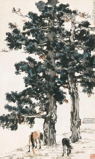 徐悲鸿《古柏双骏》,成交价:1782.5万元