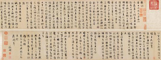 鉴藏印:留余堂记、四明朱氏收藏图书记、乾隆御览之宝、乾隆御赏之宝、石渠宝笈、养心殿鉴藏宝、三希堂精鉴玺、宜子孙、乾隆鉴赏、嘉庆御览之宝、宣统御览之宝、协中赏玩
