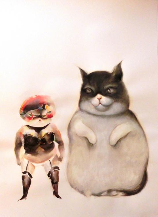 宋洋,Bad Girl之流浪猫,78x110cm,纸本水彩
