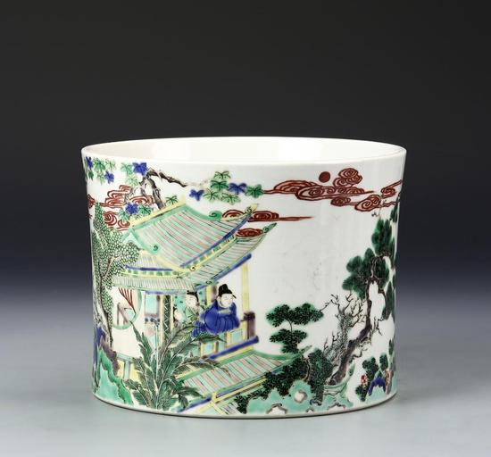Lot 133五彩笔筒 高15cm,直径19cm 落槌价:17,000 美元