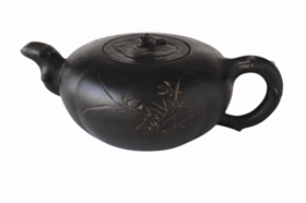 黑色具有威严庄重之感,古人崇尚黑色,陶器焐黑是一种历史悠久的传统工艺,早在新石器时代已有制作,4000多年前龙山文化黑陶蛋壳杯的出土曾 震惊世界。北方的焐黑工艺与南方工艺稍有差别,原理却是同一,都是渗炭法,北方是在窑烧最后阶段自窑顶缓缓注水,使窑内燃烧的木炭明火熄灭,生起浓烟将陶 器熏黑。江南一带的焐黑工艺则是在烧制陶器前先加入许多稻壳砻糠,窑烧过程中,稻壳砻糠里的碳素即附着于陶体。焐黑紫砂在烧制时,也要在匣钵中填入稻壳。 晚清民国时期,随着西洋工艺的流入,陶人们学会用金属氧化物对紫砂进行着色,如加入氧化钴得墨绿色,加氧化铁得到朱红色,加氧化锰得黑色等,由于当时化学 原料价格昂贵,故只作少量创新,并未大行其道。而现代有些人则以这些原料加入普通陶土制作茶壶以充正宗紫砂渔利。