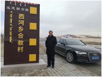 作者同达茂旗合教村党支部书记张宝贵交谈
