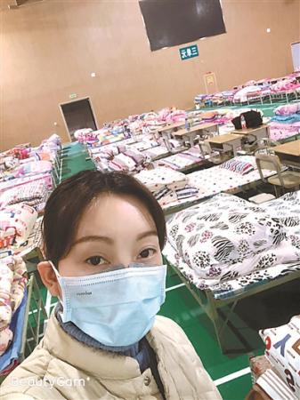 武汉病例暴增期间,各区的体育馆开始改建成为方舱医院。开院前大量的准备工作都需要人手,靳官萍就成为了其中一员。“我去的是洪山体育馆,第一批的三个方舱医院之一。”48小时之内就要把空旷的体育馆改建成摆满病床的医院,志愿者们的压力也不小。靳官萍负责铺电热毯、整理床单被套和患者的一人份生活用品,让每个病人来了就能住下。