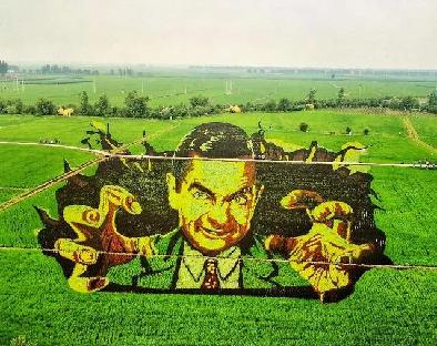 ▲“稻梦空间”2020年稻田画作品《憨豆先生》。