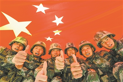 正在执行某项任务的陆军某旅作战支援营官兵为祖国点赞。宋石磊摄